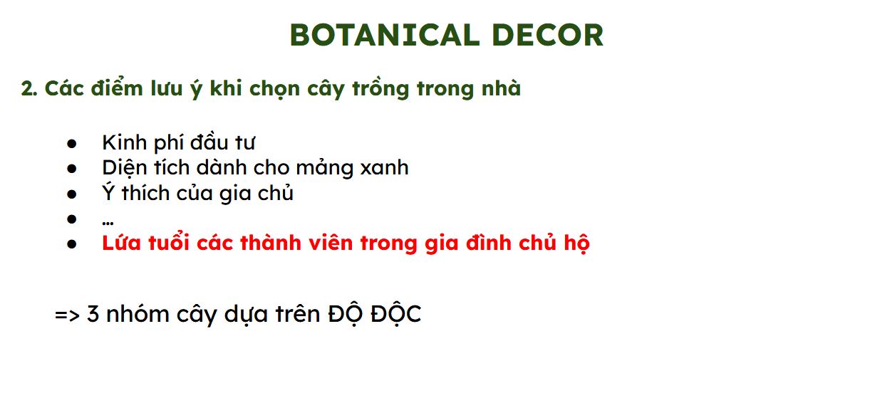 Một số lưu ý quan trọng khi lựa chọn cây trang trí cho không gian sống bao gồm: