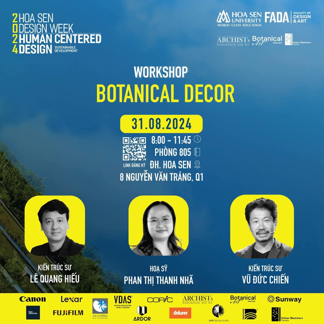 Đây là hoạt động kết hợp giữa Thực vật họa và Ký họa đô thị, mang đến góc nhìn sáng tạo độc đáo. Workshop diễn ra vào ngày 31/08/2024 tại phòng 805 (Lầu 8), Thư viện Đại học Hoa Sen, 8 Nguyễn Văn Tráng, Quận 1, Tp.HCM.