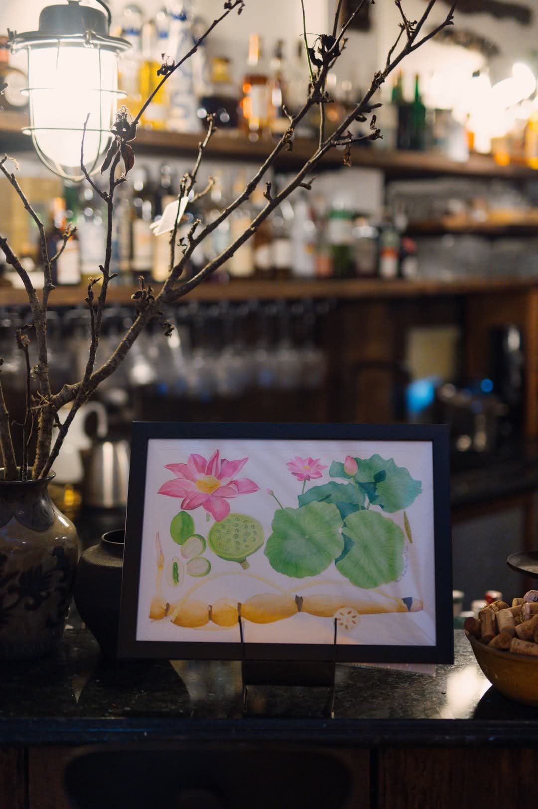 Trong không gian đầy tính nghệ thuật, hội họa và ẩm thực không chỉ song hành mà còn tôn vinh lẫn nhau, mở ra một hành trình cảm xúc độc đáo. Thực đơn đặc biệt được xây dựng xoay quanh cây sen, loài thực vật mang nhiều giá trị văn hóa và dinh dưỡng. Từ củ, ngó, lá, hoa đến hạt sen, mỗi nguyên liệu đều được chế biến một cách tinh tế, tạo nên những món ăn và thức uống không chỉ ngon miệng mà còn giàu cảm xúc. Với sự sáng tạo của đội ngũ ẩm thực NÚC, từng hương vị đều được chăm chút tỉ mỉ, mang đến trải nghiệm ẩm thực tròn đầy và đáng nhớ.
